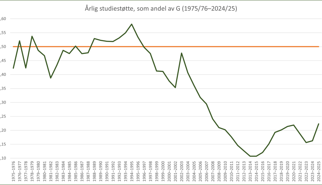 Igjen viser SV i sitt alternative statsbudsjett at de ønsker å øke studiestøtten med ti prosent, samtidig som de vil knytte den til grunnbeløpet i fo…